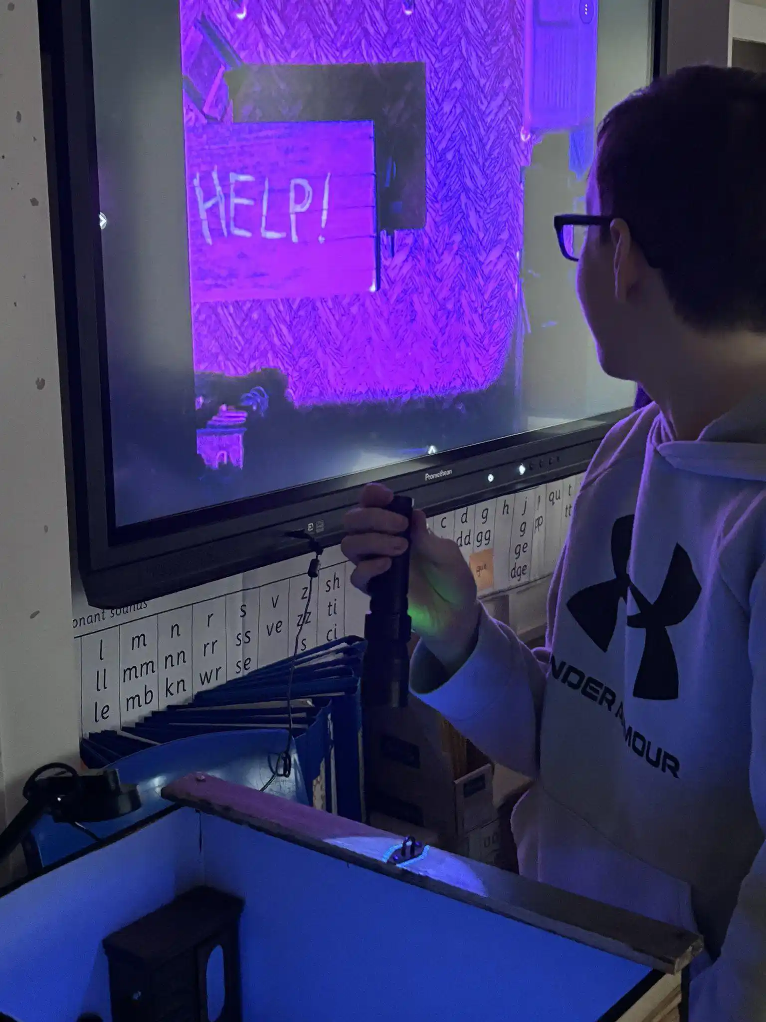 The students were incredibly interested in the box when I first came into the room, opening the locks and using the UV light was very exciting for them, and at the end they were delighted to look through it all. During the lesson I used a camera connected to the smart board to show the rest of the class what the group interacting with the box was seeing.